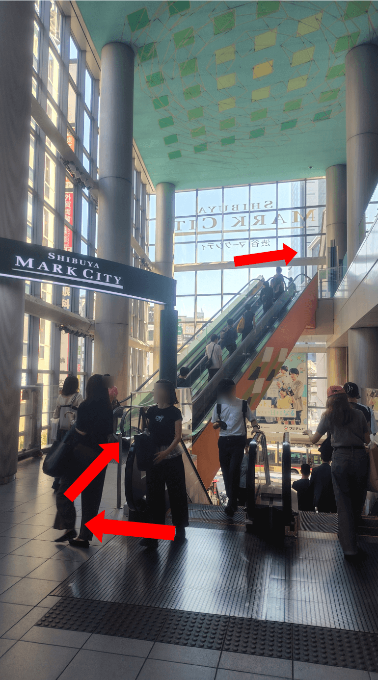 渋谷マークシティへの入口が目の前に見えますので、エスカレーターで3階へ上がってください。