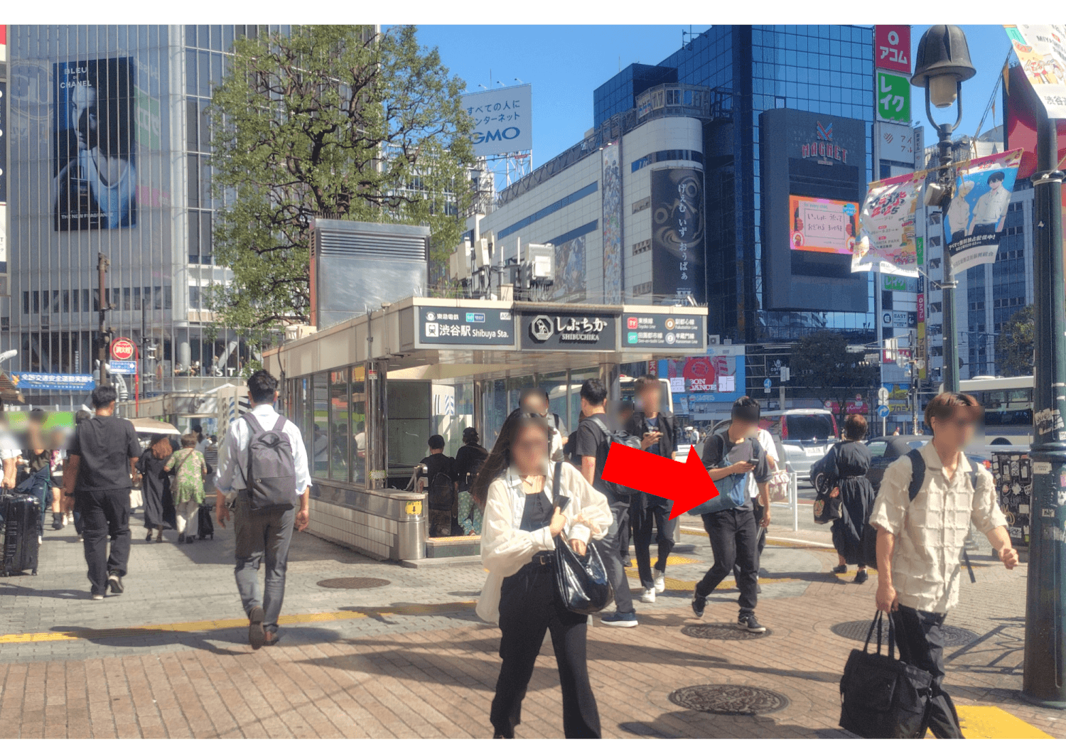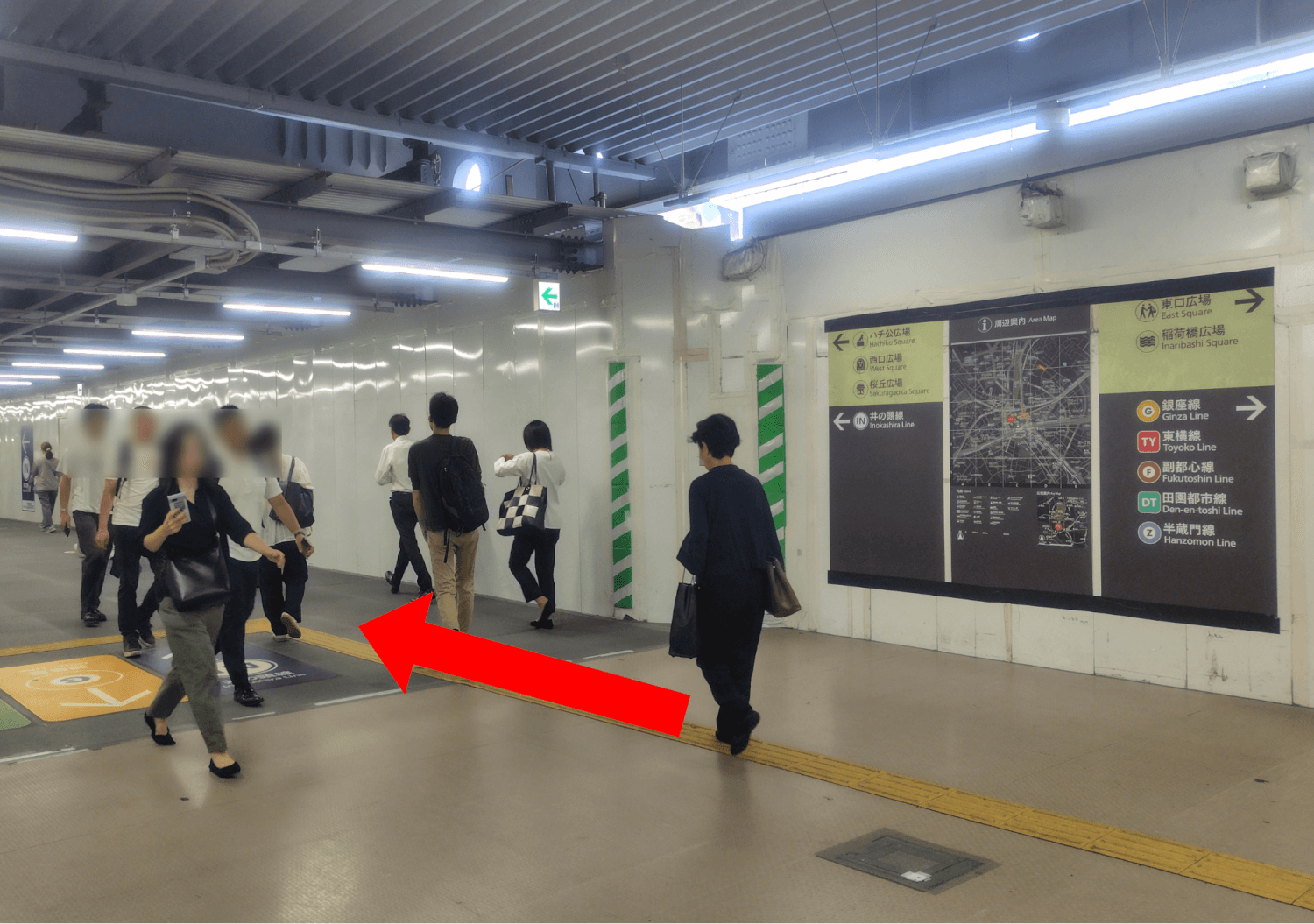 JR中央改札、銀座線スクランブルスクエア方面改札を出たら、