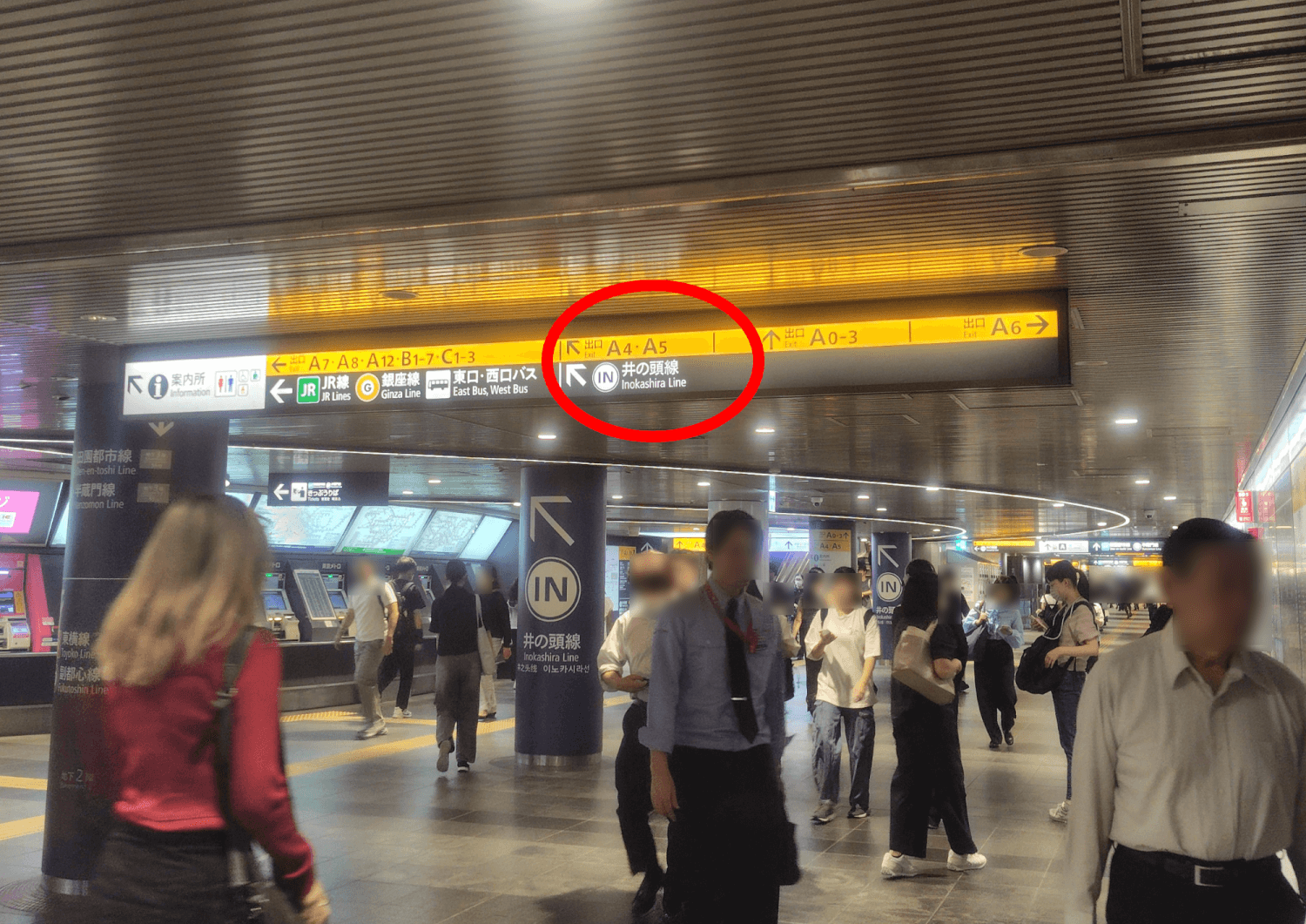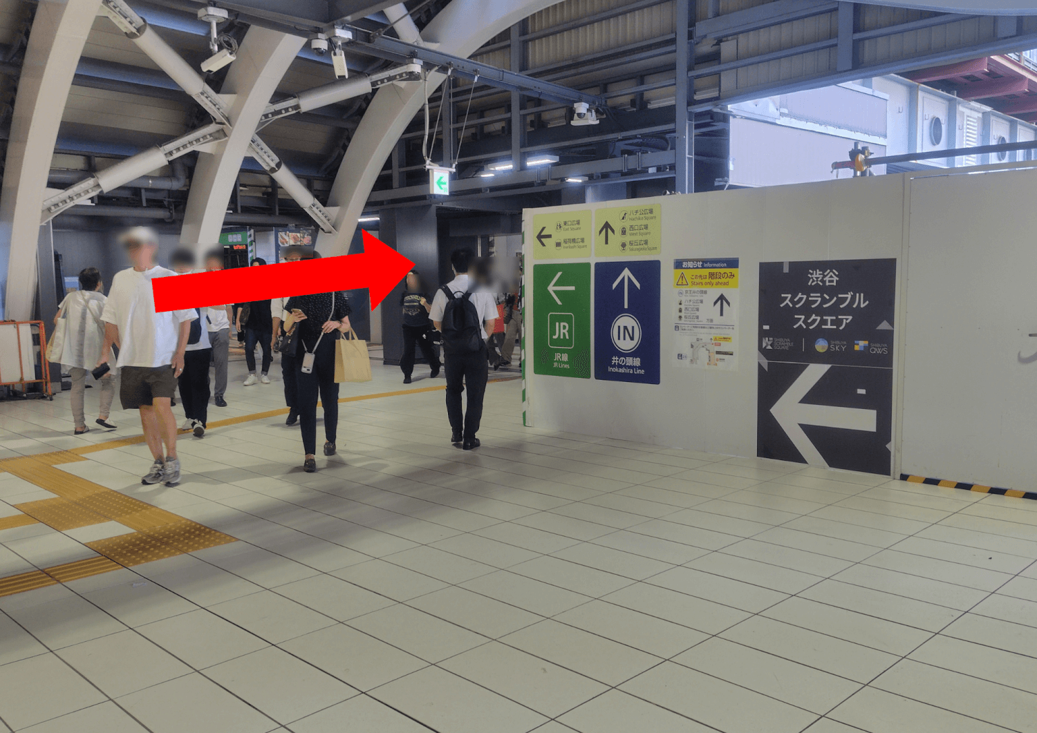 2025年9月18日時点、中央改札は2方向に出口がありますが、「井の頭線」の表示がある方へお進みください。