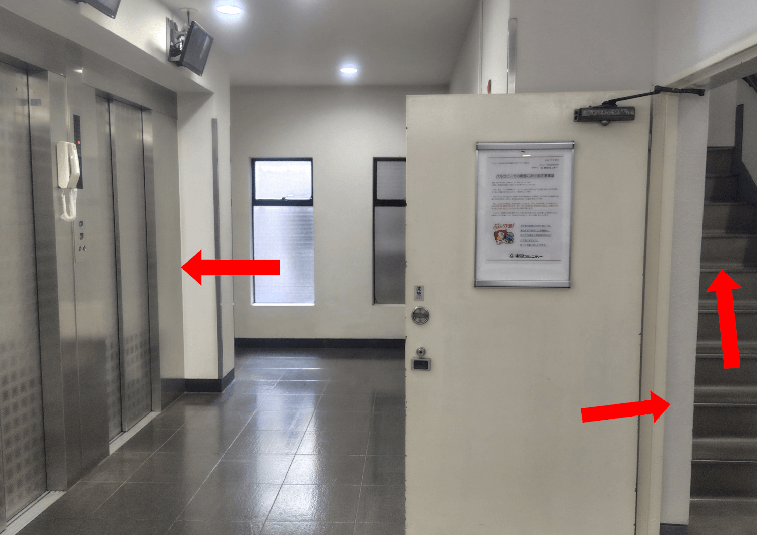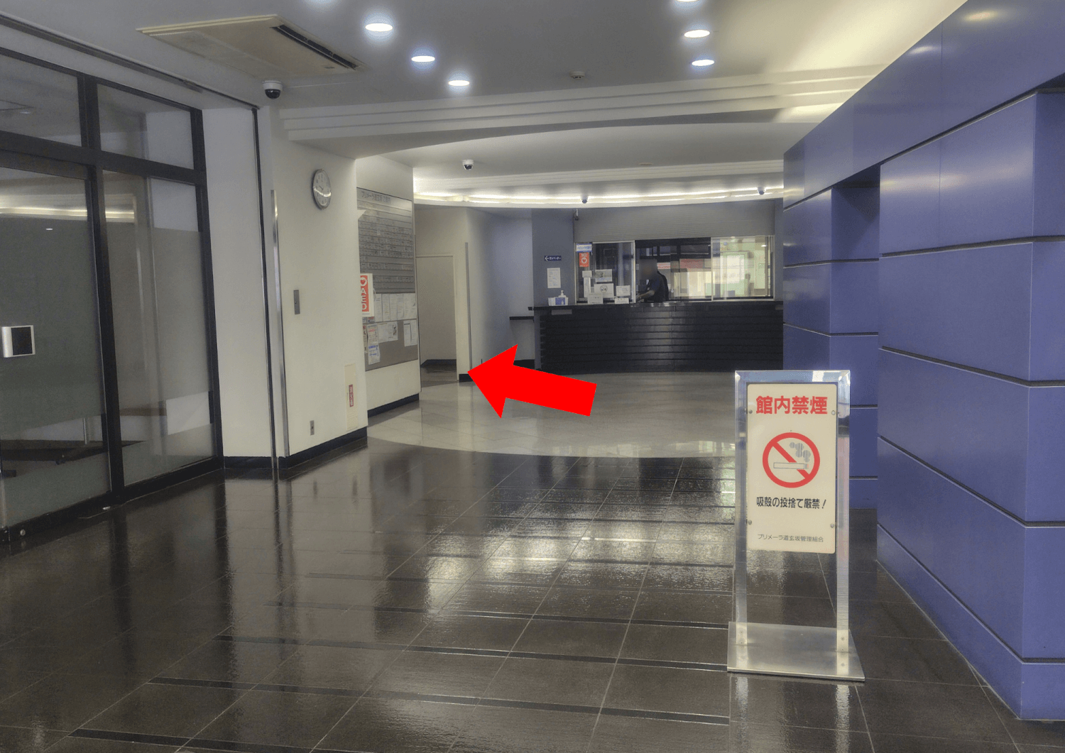建物の中に入ったら、管理人室の前を左へ。