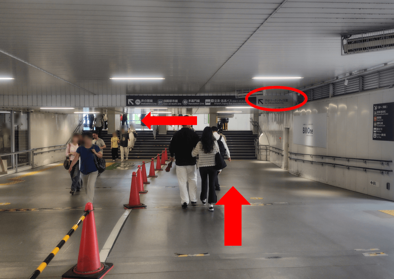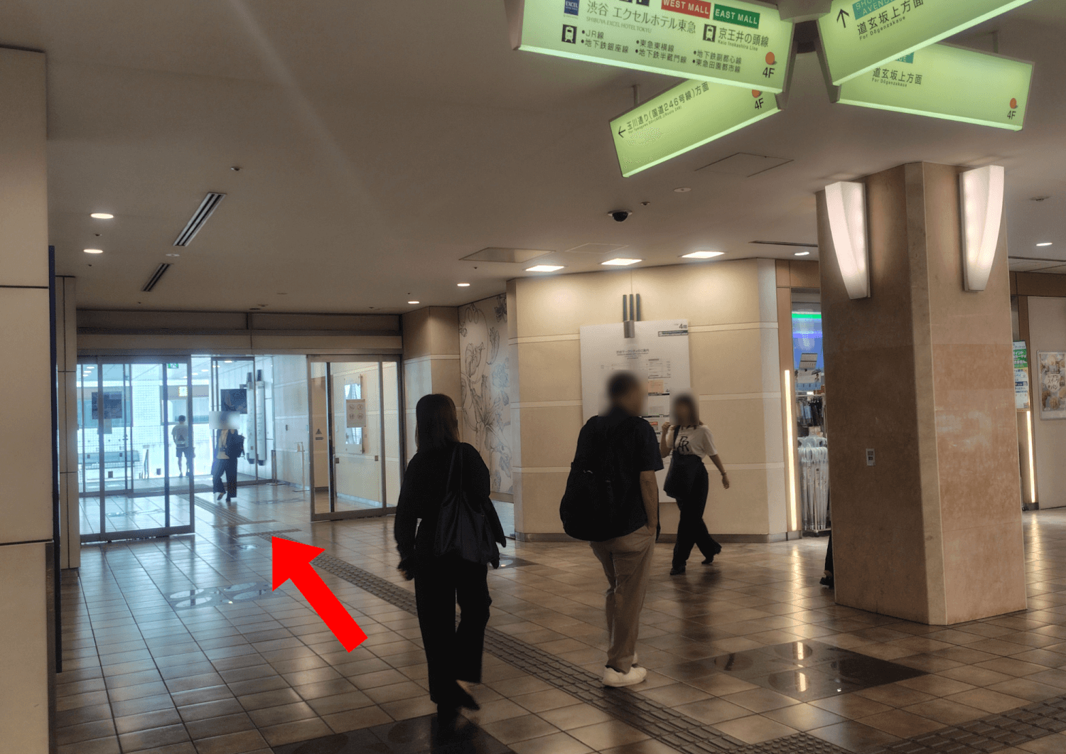 アベニュー口の改札を出たら振り返るようにして、WEST MALL内を「道玄坂上」方面へ進みます。