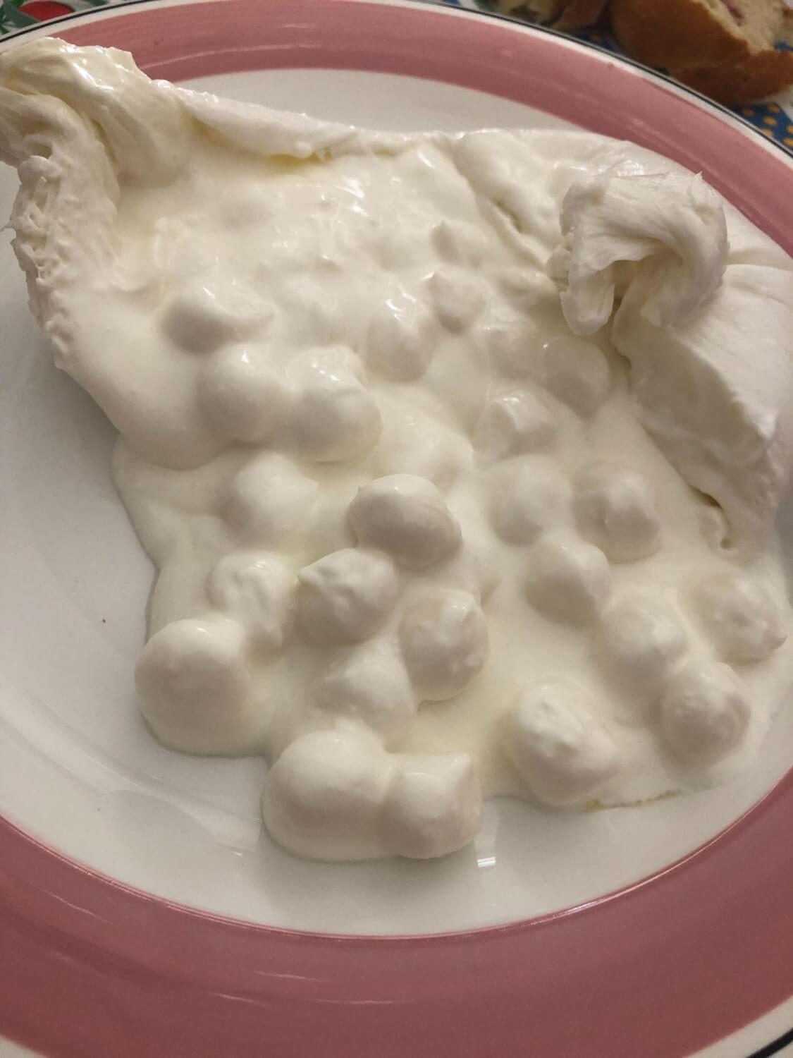 モッツァレッラチーズよりも濃厚なブッラータチーズのような味わいで、中に入っているクリームも、やっぱりブッラータチーズなのでは⁉と思うほどのボリューム感…!