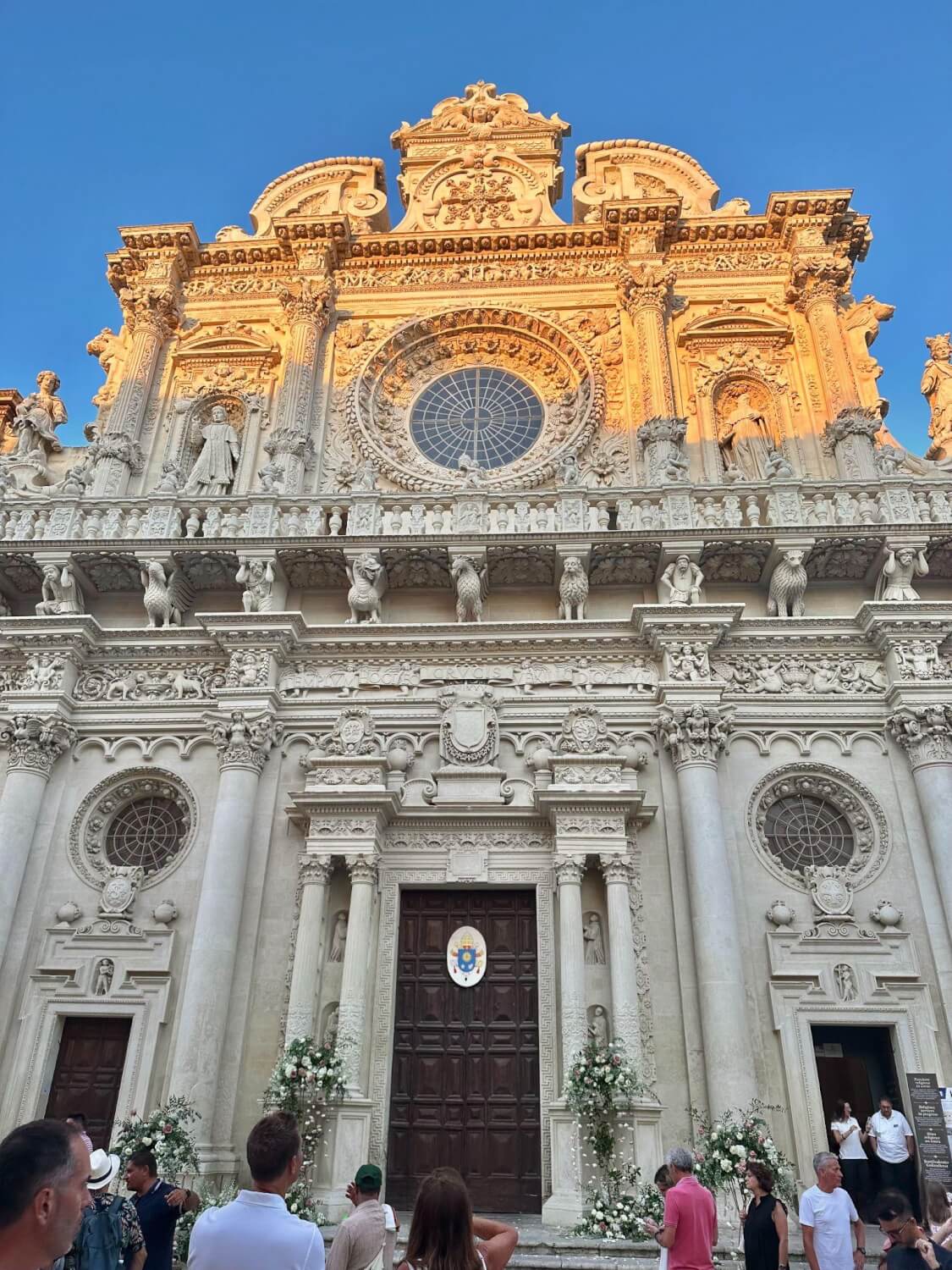 目の前に現れたのは、サンタ・クローチェ聖堂。まるで彫刻が建物になったような。天使や果物、動物たちが壁いっぱいに踊っていて、石なのにまるで生きているみたいでした。