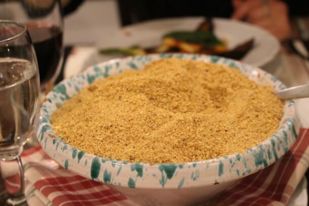 ここには、どうやらパン粉をかけて食べるらしいのですが