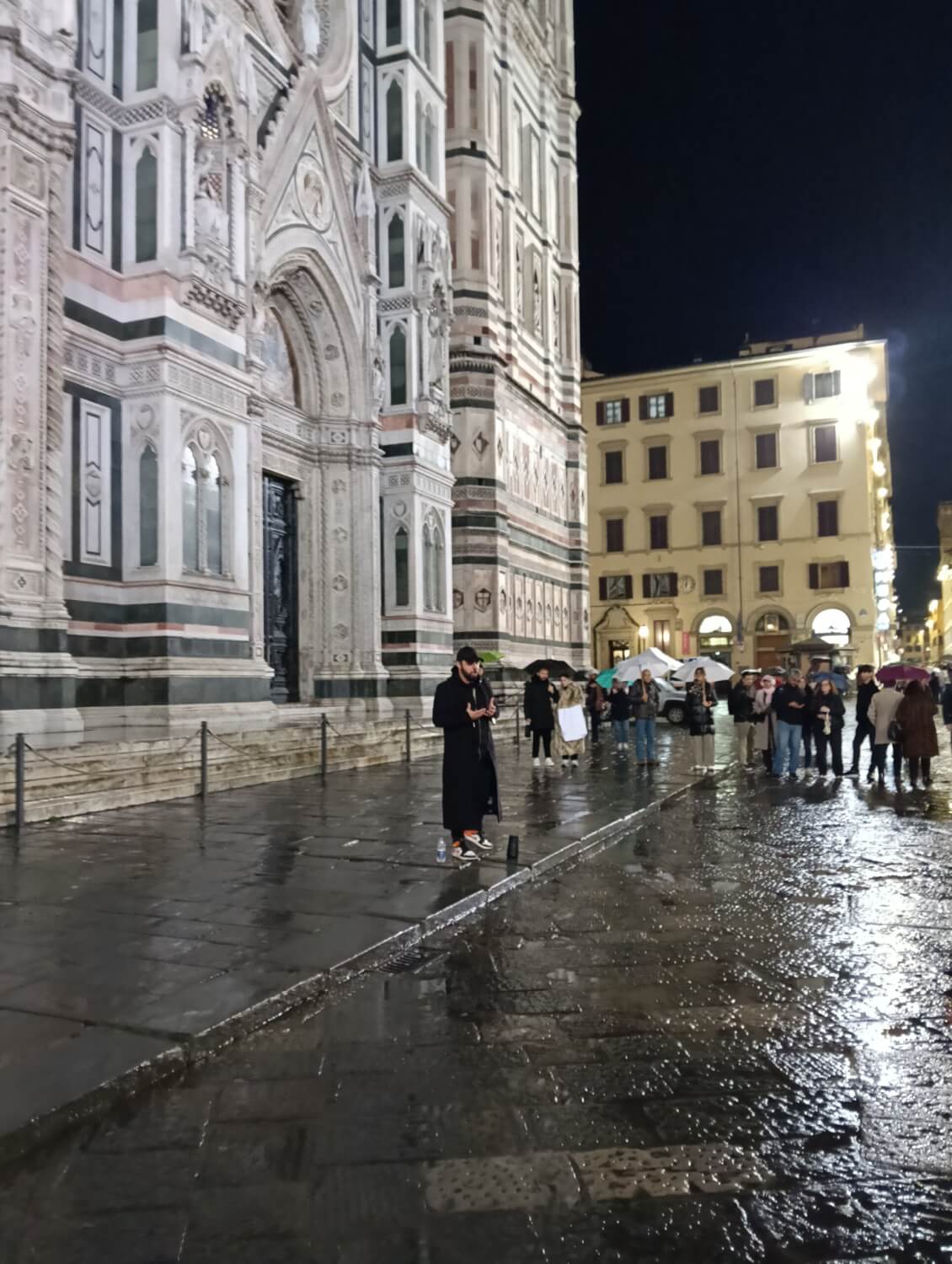 土曜日の18時頃、サン・ジョヴァンニ洗礼堂前でオペラを歌い始めた男性です。驚きましたが、声量もすごく聴き入り感動しました。フィレンツェならではの光景でしょうか。