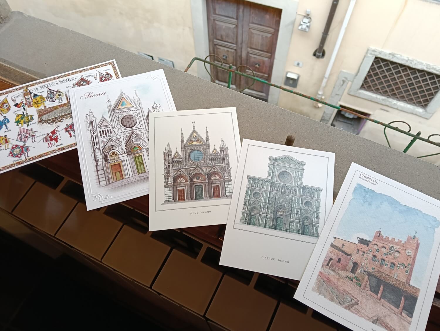 フィレンツェ、シエナ、チェルタルドで素敵な絵葉書を見つけました。軽くて荷物にならない良い思い出になると思います。