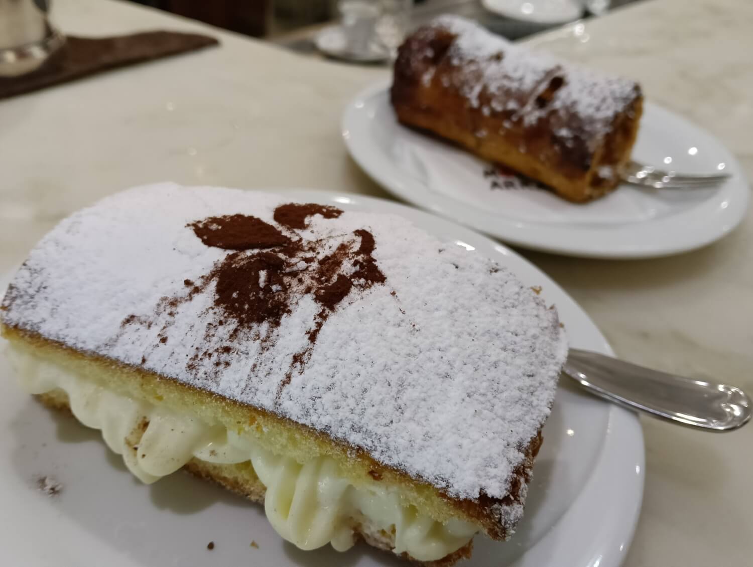 レベル2で同じクラスでした日本の方とバールで頂いたドルチェミニョンです。クリーム入ったビニエとイタリア北部のバーチ・ディ・ダマ、カネストレッロ、南部のカンノーロです。