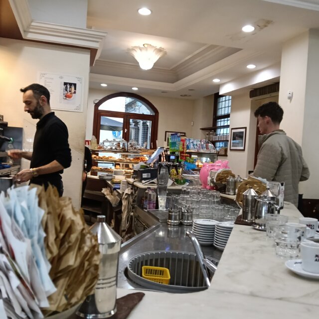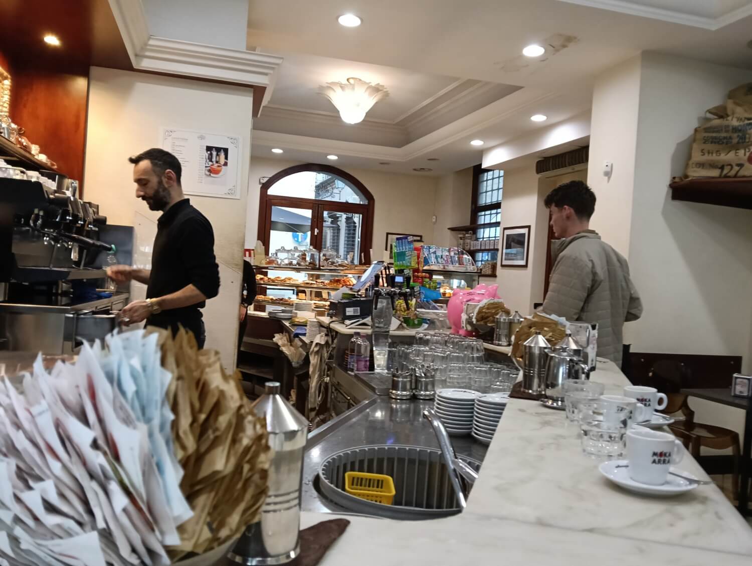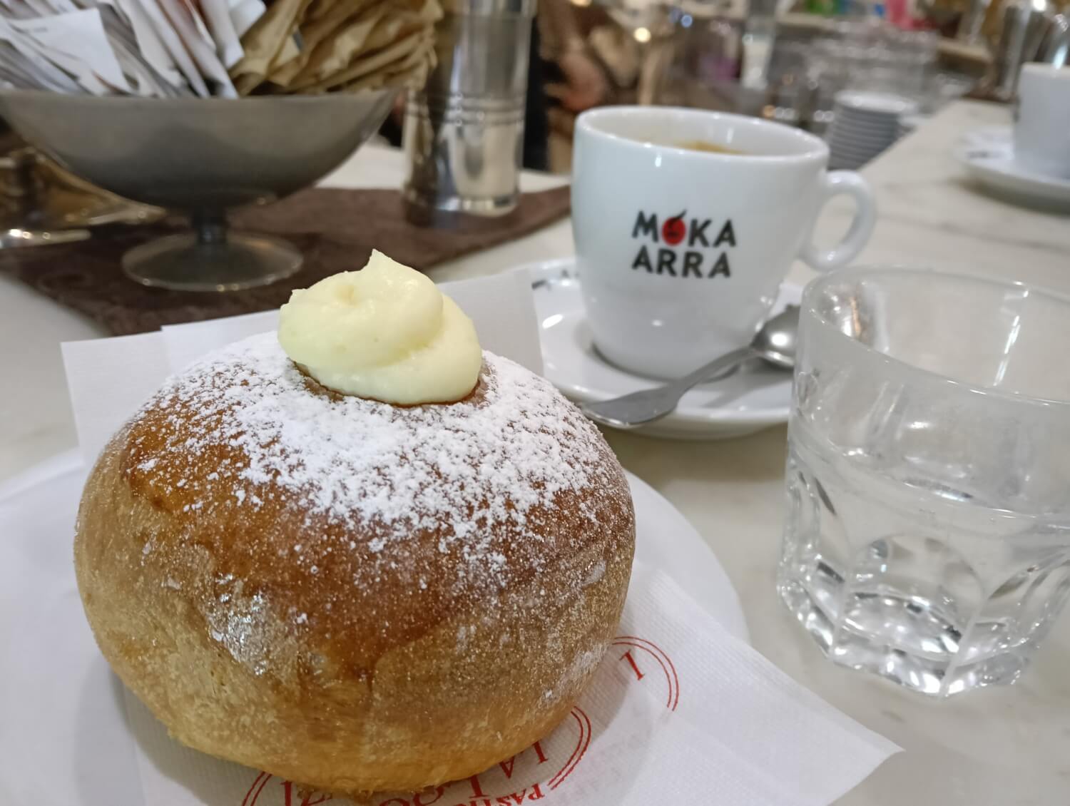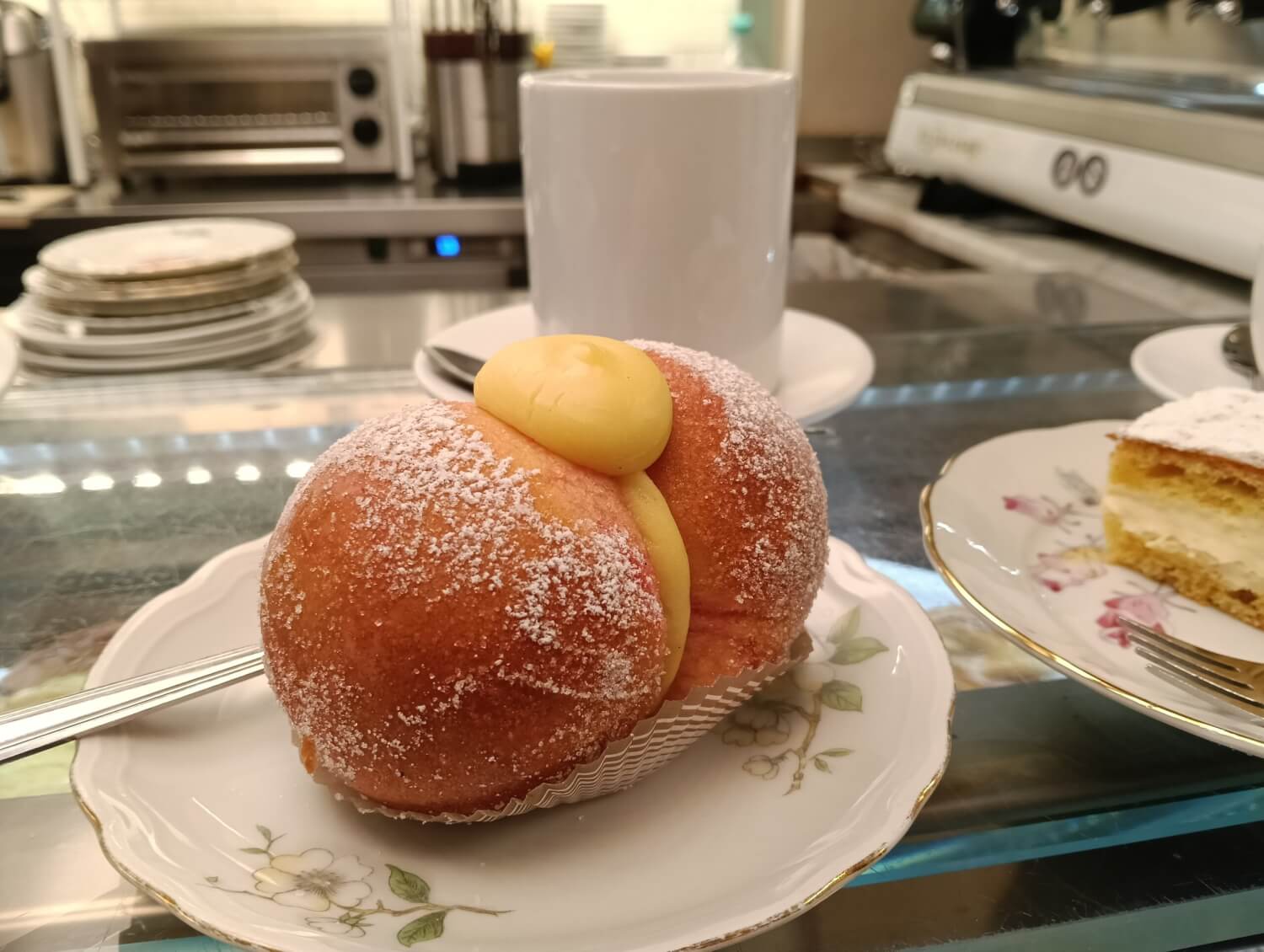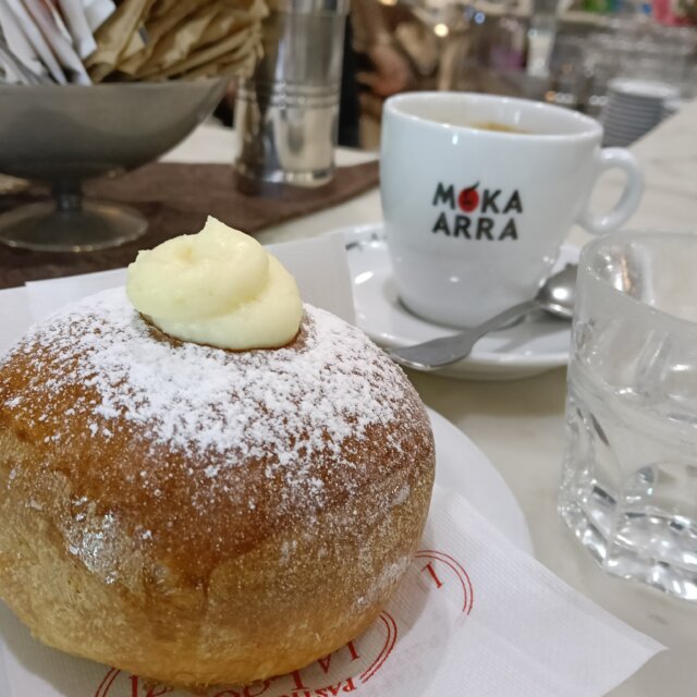 学校まで徒歩15分のアパートを午前7時半過ぎに出ると、沢山の学校へ向かう学生達を見かけました。白い息を吐きながら、語学学校近くの目当てのバールへ。クリーム入りのブリオッシュと温かいコーヒーで暖を取り気合いを入れて語学学校へ向かいました。