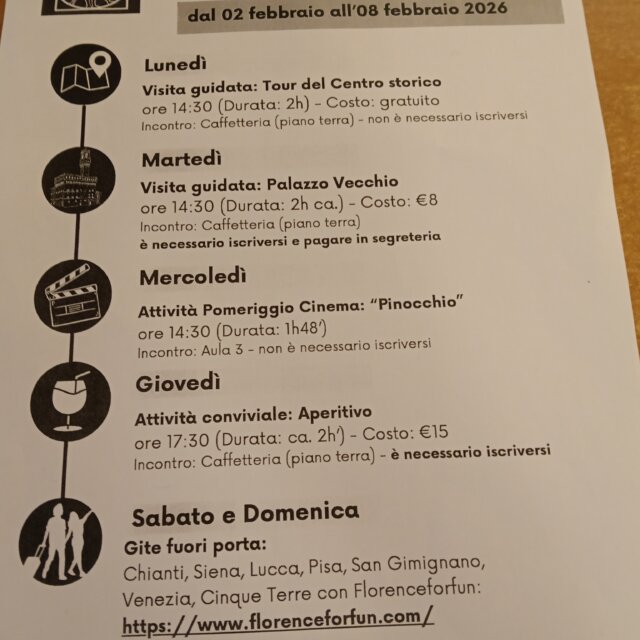 休憩時間にこちらの学校で知り合えた人達とすれ違う度に話をすることもとても楽しいです。レベル4担当のロレンツォ先生が、レベル2のクラスはどうですか?と気にかけて下さいました。
