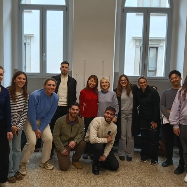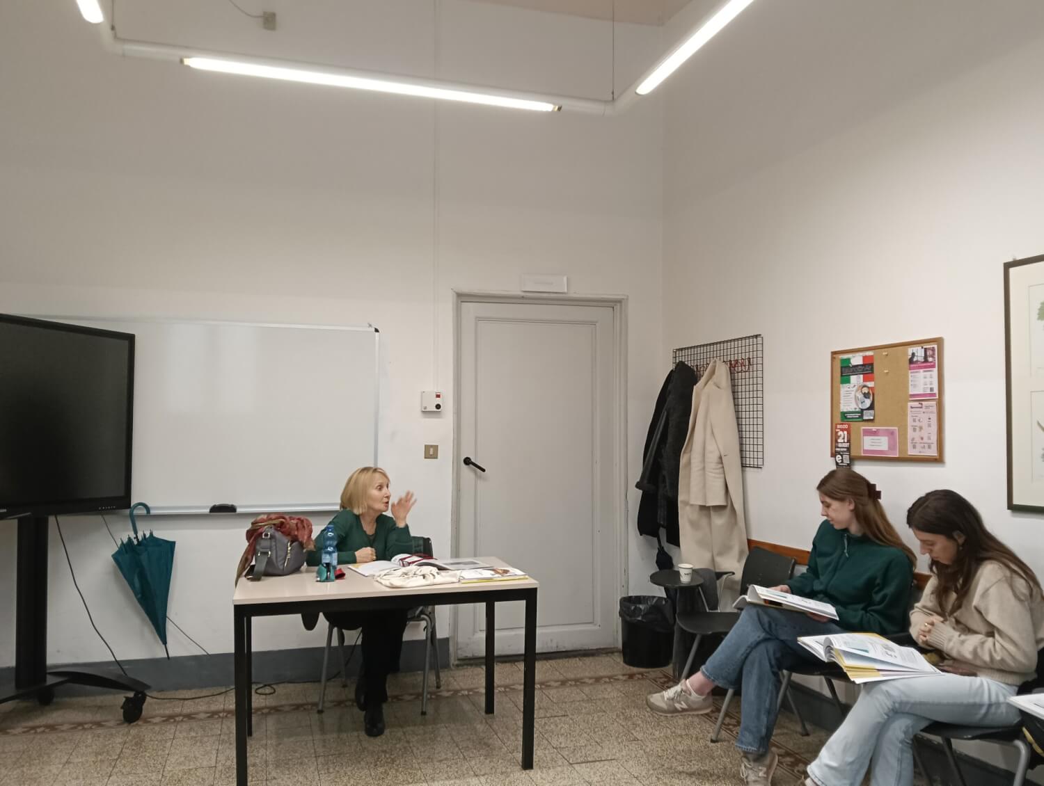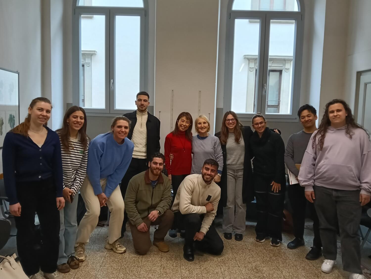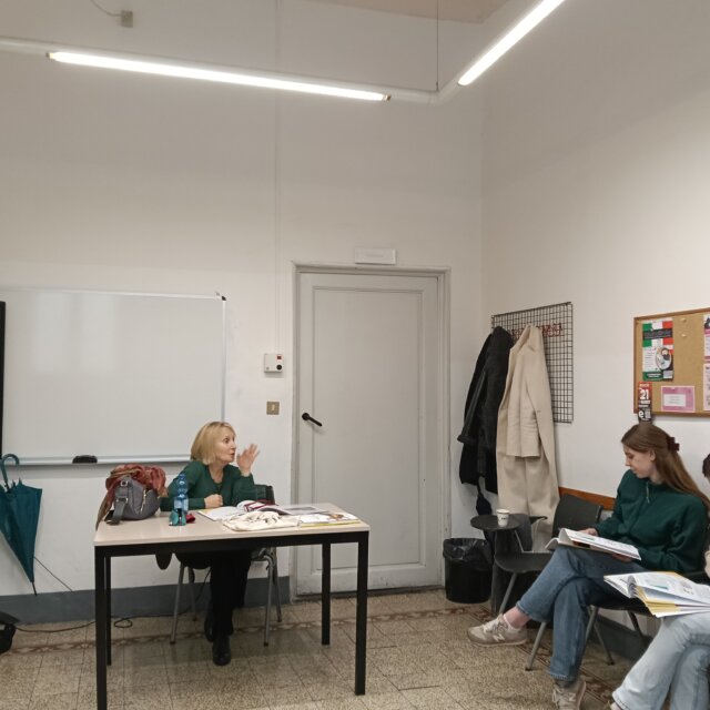 この日は、メキシコ、ブラジル、イスラエル、オランダ、ノルウェーと様々な国からの若者達と仕事でイタリア語を学んでいる日本の方と私の11名の生徒とベネデッタ先生でした。皆さんとても勉強熱心でした。